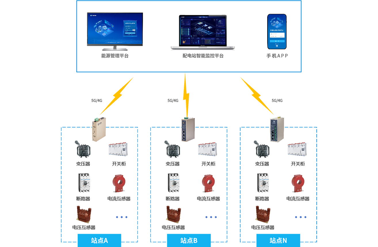 顺利获得K8凯发天生赢家一触即发的能源电力网关采集配电站的各类设备(如变压器、开关柜、断路器等)将采集到的配电数据(如电流、电压、温度、湿度等)传输至配电站智能监控平台。平台实时监测设备状态,当出现异常或故障时及时发出预警,并给予故障诊断和处理指导。同时具备电能质量监测功能,支持远程运维操作和负荷优化管理。
