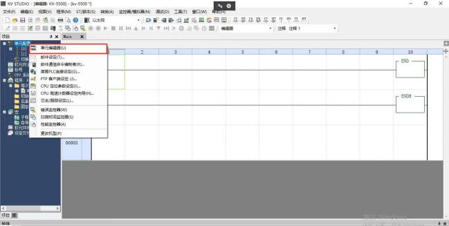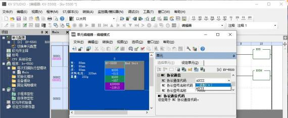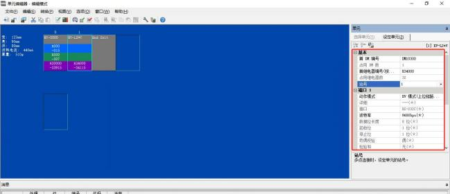 单元编辑器-设定单元设定站号,端口1:默认232串口,KV模式(上位链路)和端口2:选择KV模式(上位链路);接口选择RS-485(两线制)。