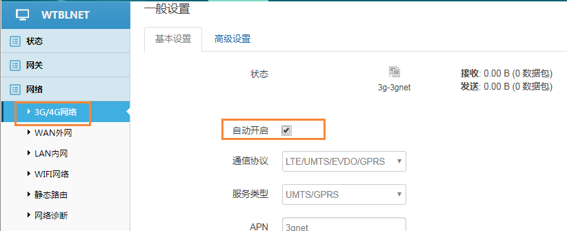 联网方式只能三选一,不能同时选择两种。网关设置为拨号方式(4G/3G上网模式),系统会启动无人值守看护程序,如果发现没有插卡、没接天线、手机卡欠费会进入诊断模式,会重启网络,所以调试过程如果不用4G/3G上网,请先关闭拨号网络。