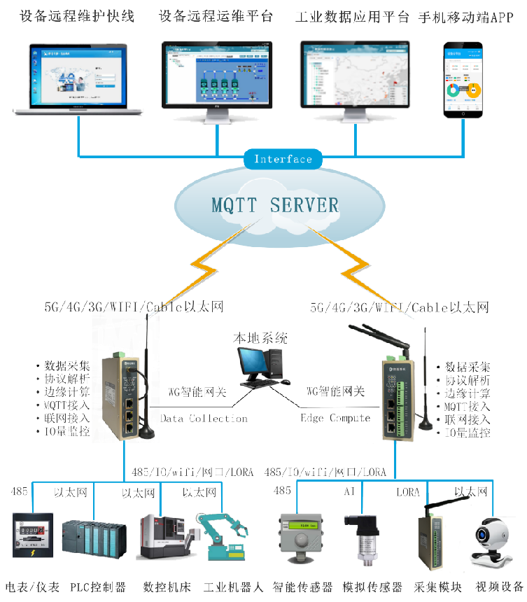利用K8凯发天生赢家一触即发工业RS485串口网关,只需要叫485接口设备与网关连接,就可以直接实现对RS485接口数据采集,并将数据转换为modbus TCP协议和上位机、组态软件通信,也可以转化成MQTT顺利获得5G/4g/wifi以太网等方式上传云平台,进行统一监管。