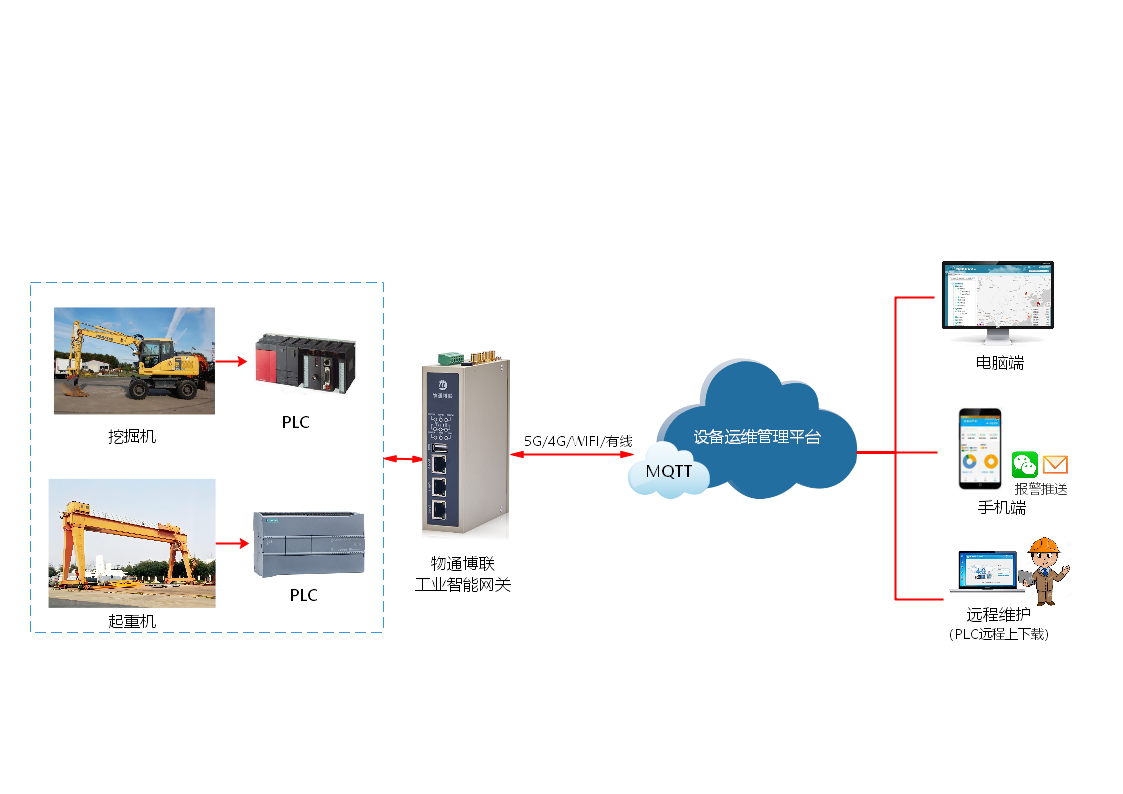 对此,K8凯发天生赢家一触即发给予高效可靠的工程机械物联网远程监控运维系统解决方案。顺利获得将工业智能网关部署到工程机械内,接入各类PLC和传感器设备,采集诸如设备位置、工作状态、运行时间等关键数据,并利用4G/5G等通讯技术将数据实时传输至云端服务器进行分析处理。