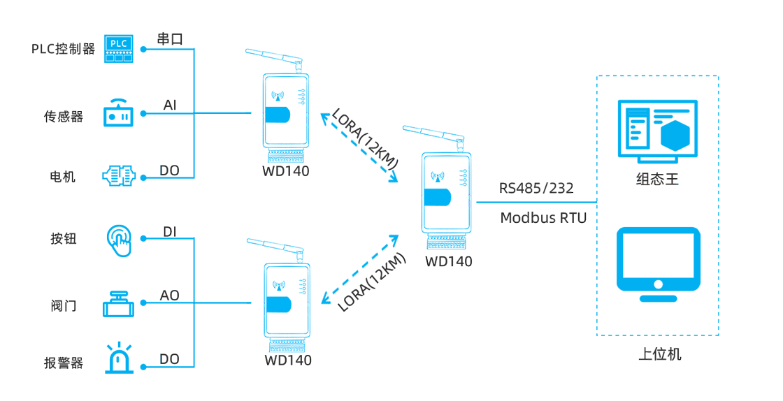 | 示例 | WD140-LM0211-485(国内频段:410~493MHz LORA,485串口) WD140-GM0211-485(国内频段:4G CAT1,485串口) WD140-LM0211-485(国内频段:850~930MHz,22dbm,485串口) |