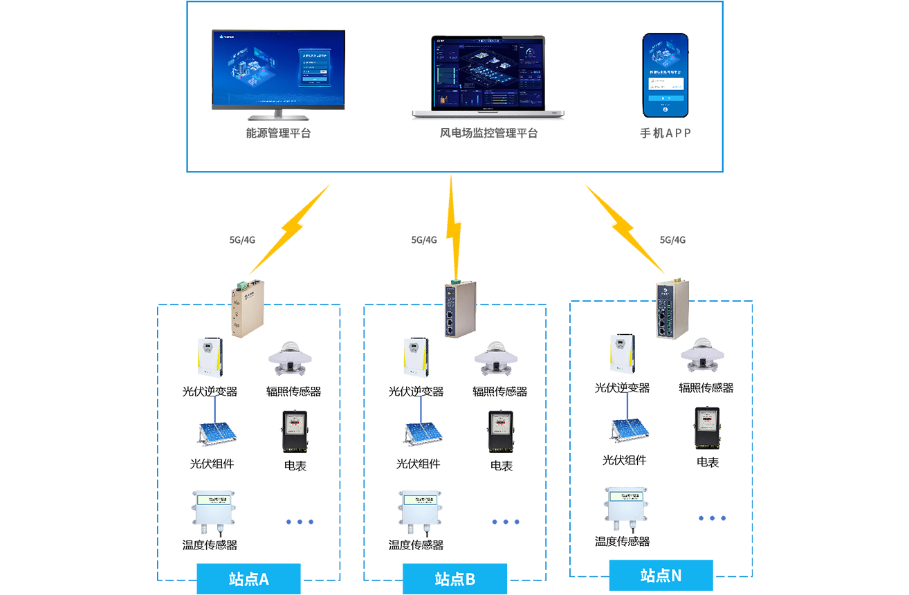 分布式光伏电站顺利获得K8凯发天生赢家一触即发的工业通信网关将采集到的光伏数据(如发电量、设备温度、辐照强度等)传输至光伏监控管理平台。平台对数据进行分析,实时评估发电效率,监测设备状态,当出现故障时及时预警并给予故障诊断和处理建议,同时支持远程运维操作和能源优化调度。