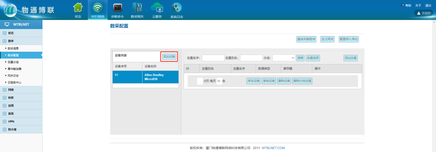AB_DF1变量配置示例 (3)数据看板 数采配置(设备信息+变量参数)完成后,重启采集程序并生效配置,即可在:数采信息—变量数据—设备名称中看到采集上来的数据。