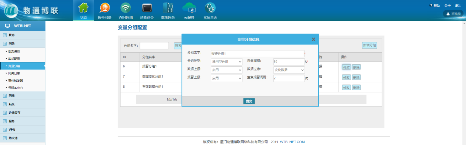 (4)变量分组 数据采集涉及多个采集时间、数据过滤、报警时,可顺利获得变量分组控制,变量需要选择到设定好的变量分组中。