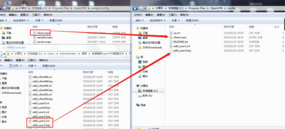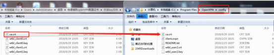 2、添加电脑客户端的config配置 将对应的ca证书、本地证书、本地私钥、client. ovpn放到config文件夹下