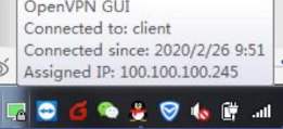 4、启动电脑客户端上的OpenVPN程序 如图显示表示已经连接成功