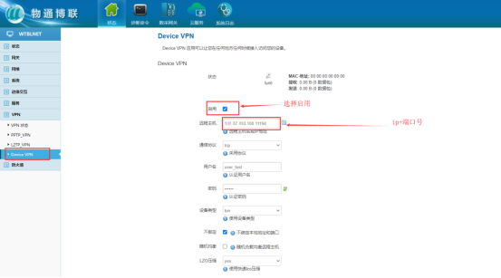 iroute 192.168.2.0 255.255.255.0 :此为对应网关LAN口的IP网段,如没填写,会导致服务器ping不通网关底下的LAN口设备。 ifconfig-push 100.100.100.2 100.100.100.202 :为隧道地址的两端,默认网关这端的隧道地址为100.100.100.2 (3)根据需求点击修改wtbl_user(用于电脑客户端端连接服务端的配置)。
