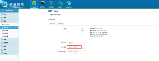 3、修改网关的LAN口IP 此ip为wtbl_client里面配置的iroute 192.168.2.0 255.255.255.0