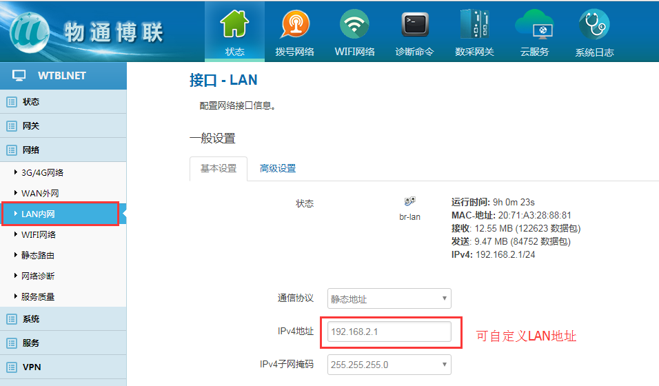 2 网关与Siemens控制器以太网适配 1、网关LAN以太网设置 网关LAN以太网地址可自定义,但WAN以太网地址和LAN以太网地址不能同一个网段。